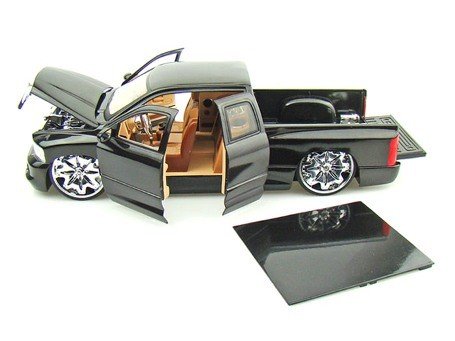 The 2003 Dodge Ram 1500 die-cast model is a 1:18 scale replica of the life-size counterpart. The features on this model is very detailed with opening doors, trunk, and hood. It's detail rich with detailed engine, rubber wheels with spinning centers, custom floor mats, 'hooked up' sound systems, and 'blinged out' accessories. Measures 11 inches in length. Add this exquisite model to your collection.