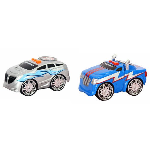 Road Rockin' Rides 2-Pack features 5" urban tuners & trucks that play popular licensed music. The freewheeling vehicles with trendy paint jobs are ready for the street, lights flash to the hard driving beat. The Road Rockin Ride Truck plays Funkytown and the Road Rockin Car plays Get Ready For This and the Road Rockn SUV plays Pump Up the Jam. Styles and colors may vary.